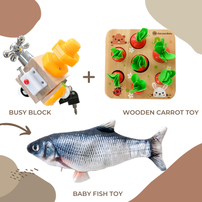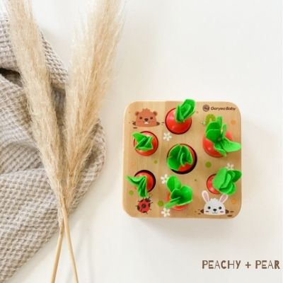 Allow your baby's motor skills to come to life as they navigate putting the carrots in the holes of the wooden block.