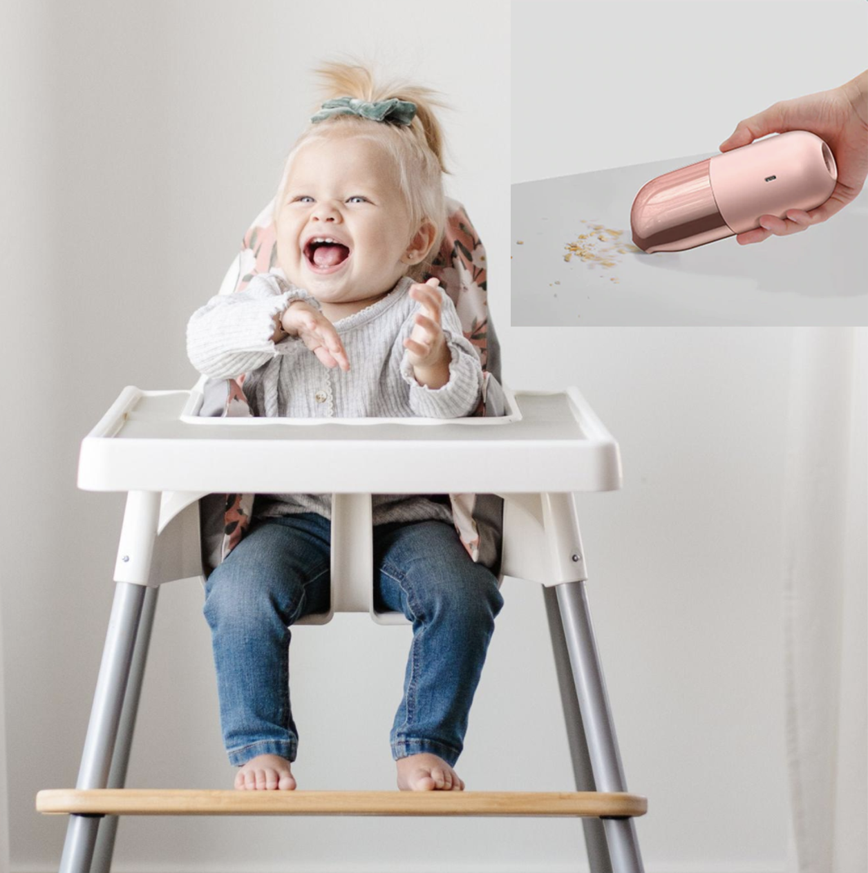As Moms, we all know how messy mealtime can get. This is why we've introduced our Portable Mini Vacuum Cleaner which's perfect for quickly whizzing up those crumbs that are left in the highchair, miraculously end up on the floor or hidden in the car.