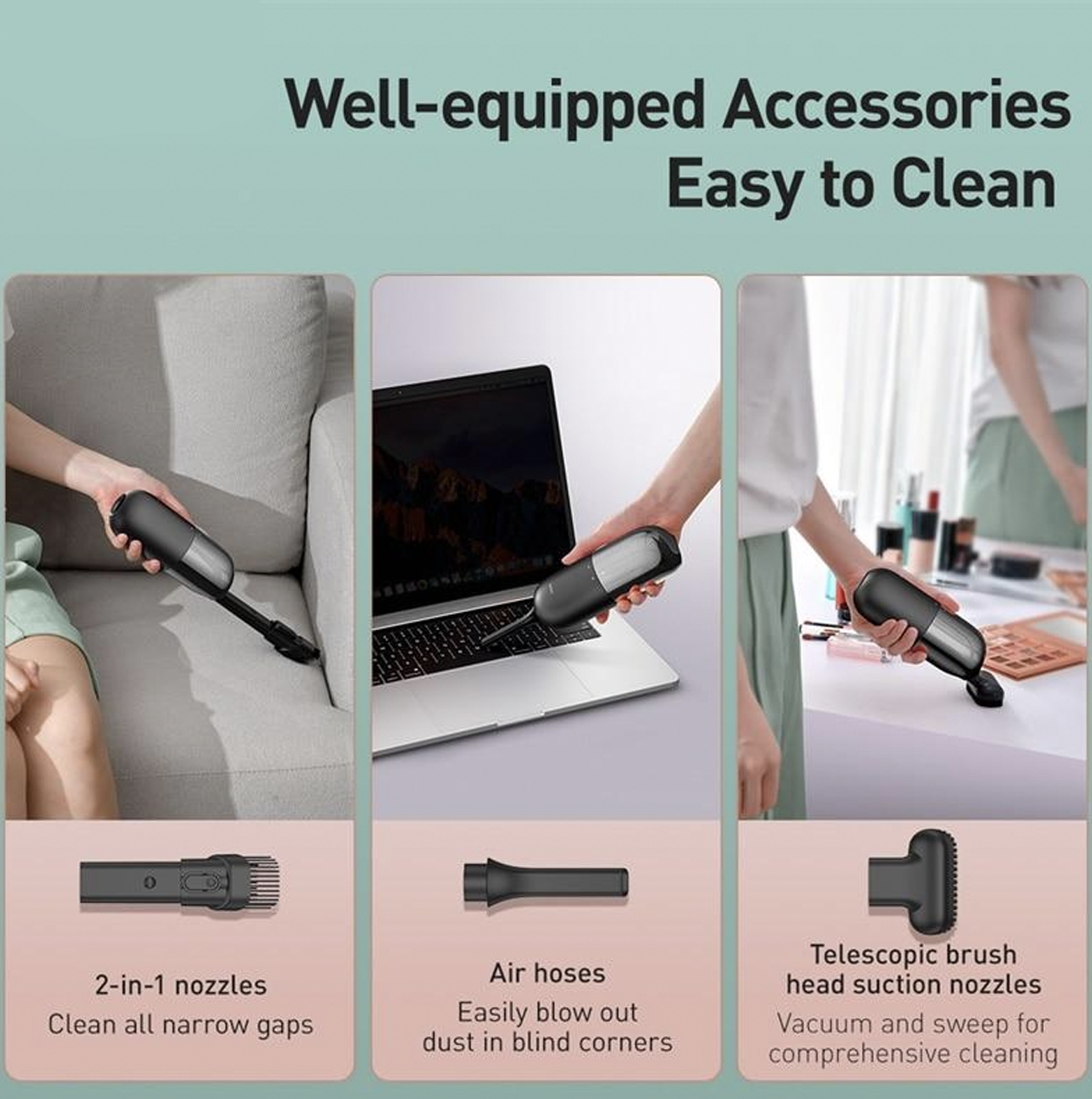 Quality: Strong suction power, triple filtration, and three nozzle variations included
